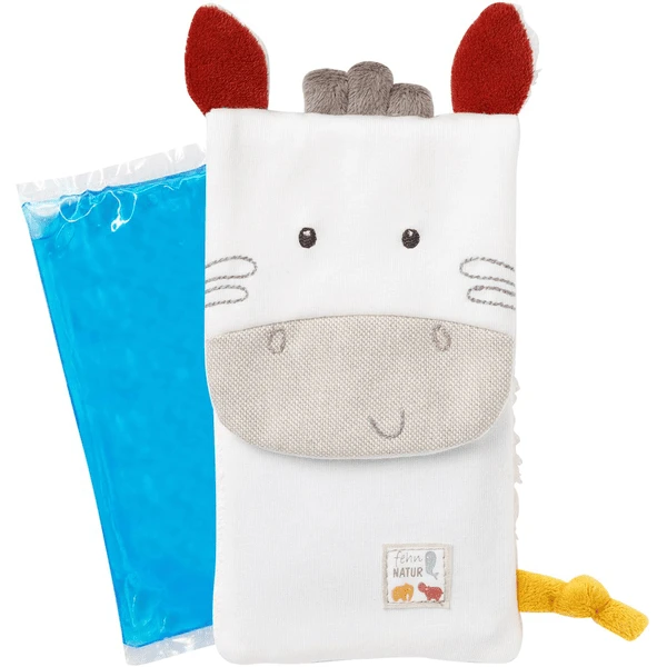 Die Zebra-Stoffhülle mit Kalt-Warm-Kompresse ist sofort zur Stelle – sie